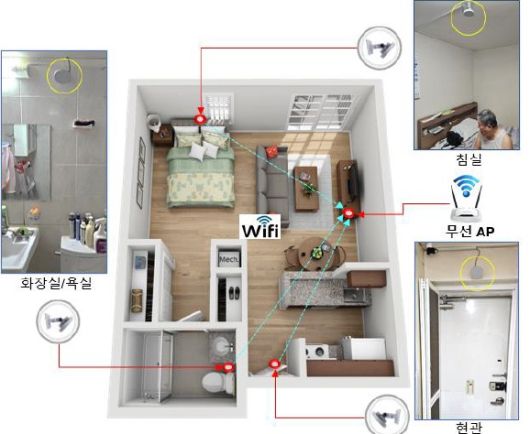 방방곳곳 케어온(ON)은 비접촉식 생체신호 레이더 센서를 대상자 가정 내 안방, 거실, 화장실, 현관 등에 가구당 최대 3개까지 설치해 건강상태를 확인한다. 센서는 대상자의 생체신호를 2~5m 거리에서 감지할 수 있다. 사물인터넷(IoT)과 빅데이터로 건강상 위험징후 발생이나 응급상황에 대비하고자 도입했다.