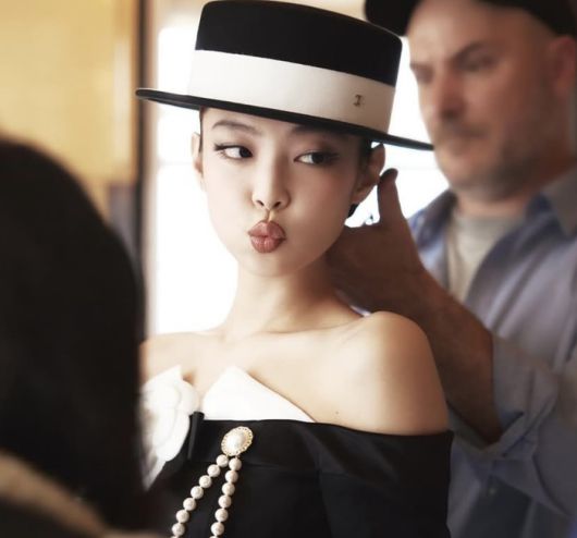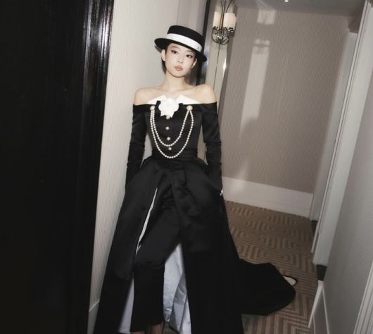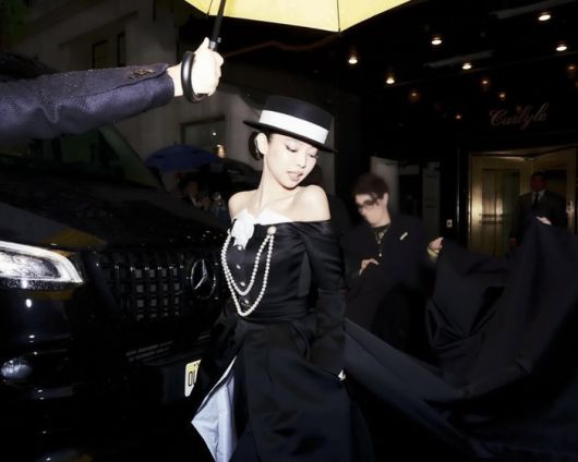 제니는 ‘슈퍼파인: 블랙 스타일 테일러링’(Superfine: Tailoring Black Style) 드레스 코드에 걸맞게 샤넬의 블랙 오프숄더탑에 팬츠를 매칭한 뒤 중절모를 머리에 얹어 스타일링을 완성했다.
