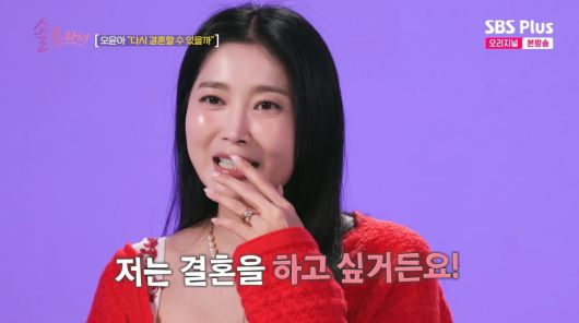 6일 방송된 SBS Plus·E채널 예능 '솔로라서'에서는 배우 오윤아가 절친 백지영을 만나 재혼 생각을 털어놨다.