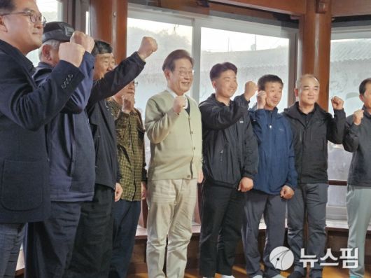 [전북 장수=뉴스핌] 박찬제 기자 = 이재명 더불어민주당 대통령 후보가 6일 '골목골목 경청투어'를 위해 전북 장수군 천천면 오옥마을에 들러 지역민들과 사진을 찍고 있다. 2025.05.06 pcjay@newspim.com |