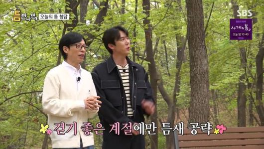 ‘틈만 나면’으로 다시 돌아온 유재석과 유연석은 시작부터 재잘재잘 수다를 떨었다. 청담동의 한 공원에서 오프닝을 한 유재석은 유연석이 공원과 가까운 경기고등학교를 나왔다는 말에 “거길 왜 나왔지”라고 의문을 품어 웃음을 자아냈다. 유재석은 “혹서기, 혹한기는 힘들다. 돌아다니기 만만한 시기에 인사를 드린다”며 시청자들에게 인사를 건넸고, 유연석은 “이 정도면 날씨 좋을 때만 온다는 걸로 아실지도 모르겠다”고 웃었다.