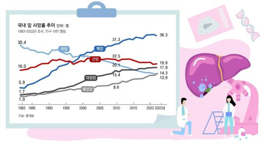 국가암정보센터 통계(2023년)에 따르면 간암은 국내에서 폐암 다음으로 사망률이 높은 치명적인 질환이다. 최근 발표된 10대 암 국내 5년 상대 생존율을 살펴봐도 간암은 38.9%에 불과하다. 환자 10명 중 6명 이상 5년 안에 숨지고 있다.