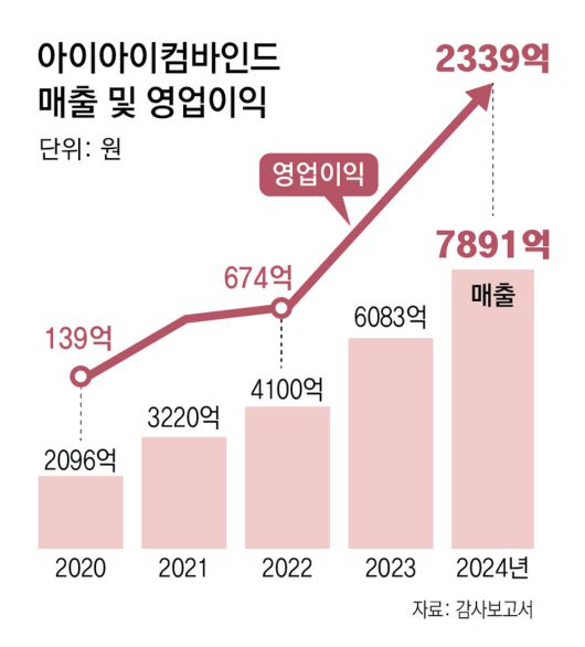 6일 금융감독원 전자공시에 따르면 아이아이컴바인드의 매출은 2020년 2096억 원에서 지난해 7891억 원으로 증가했다. 사업 부문별로 보면 젠틀몬스터는 같은 기간 2034억 원에서 6150억 원, 탬버린즈는 348억 원에서 1646억 원으로 증가했다. 전체 영업이익은 139억 원에서 2339억 원으로 17배 가까이 뛰었다.