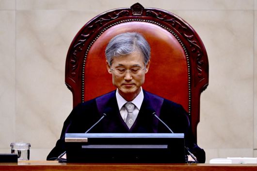 조희대 대법원장이 1일 오후 서울 서초구 대법원 대법정에서 이재명 더불어민주당 대선 후보의 공직선거법 위반 사건 상고심 선고를 준비하고 있다. 2025.05.01 사진공동취재단 |
