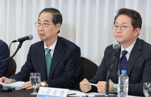 6일 열린 관훈토론회에 참석한 한덕수 전 국무총리(왼쪽). 사진공동취재단 |