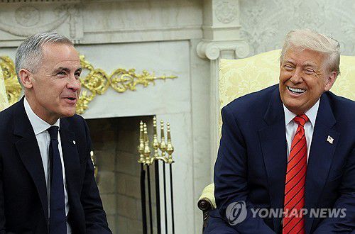 (워싱턴=연합뉴스) 김동현 특파원 = 도널드 트럼프 미국 대통령과 마크 카니 캐나다 총리의 첫 회담은 양국 간 산적한 갈등 현안을 고려하면 예상보다 우호적으로 진행됐지만, 관세와 캐나다의 미국 편입 문제 등을 두고 공개적으로 '신경전'을 벌였다.