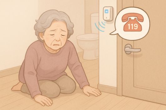AI 센서가 노인의 쓰러짐을 감지해 119에 긴급 신고하는 장면을 표현한 이미지. 챗GPT 일러스트