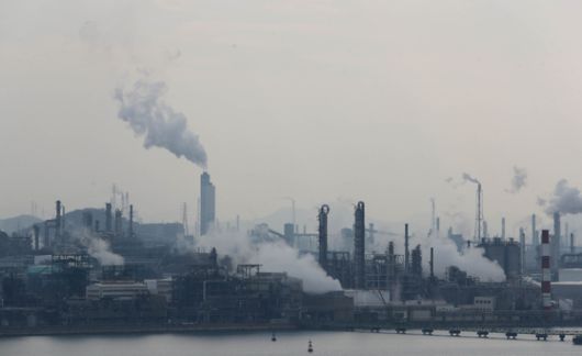 석유화학 업체가 밀집해 있는 전남 여수시 여수국가산업단지에서 하얀 수증기가 올라오고 있다. 연합뉴스 |