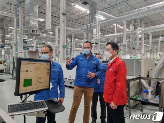 이재용 삼성전자 당시 부회장이 지난 2022년 9월 멕시코에 위치한 하만 공장을 방문, 관계자로부터 사업 현황을 보고 받고 있다. (삼성전자 제공) 2022.9.12/뉴스1 |