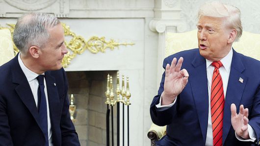 하지만 무역적자 및 관세 협상을 언급하면서는 표정이 달라졌다. 트럼프 대통령은 “미국은 미국의 자동차를 만들고 싶지 캐나다산 자동차를 원하지 않는다. 캐나다산 철강ㆍ알루미늄도 원하지 않는다”고 강조했다. 또 ‘미국의 관세를 철회하도록 설득하기 위해 카니 총리가 할 수 있는 말이 있느냐’는 취재진 질문에 “없다”고 답해 캐나다에 대한 관세 부과를 고수하겠다는 입장을 확인했다.