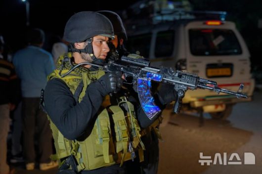 [파할감=AP/뉴시스] 22일(현지 시간) 인도령 카슈미르 파할감에서 무장 괴한들이 관광객들에게 무차별 총격을 가한 사건 후 인도 경찰이 주변을 경계하고 있다. 현지 경찰은 4명의 괴한이 파할감 인근 바이사란 계곡에서 관광객 수십 명에게 총기를 난사해 최소 26명이 숨지고 수십 명이 다쳤다고 밝혔다. 2025.04.23. |