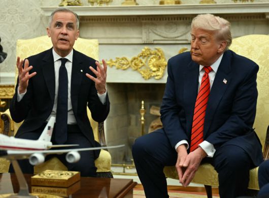 6일(현지시간) 백악관 집무실에서 열린 도널드 트럼프 미국 대통령(오른쪽)과 마크 카니 캐나다 총리의 회담.(사진=AFP)