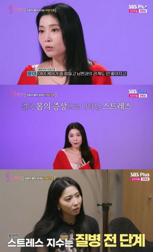 지난 6일 방송된 SBS Plus, E채널 예능 '솔로라서'에는 스트레스 지수 검사를 받으로 한의원을 찾은 오윤아의 모습이 담겼다.