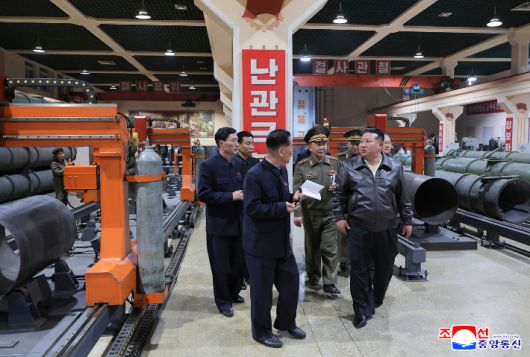 북한 김정은 국무위원장이 군수공장을 방문해 "더 많은 포탄을 생산하여 우리 무력의 전력 확대에 이바지해주기 바란다"고 밝혔다.