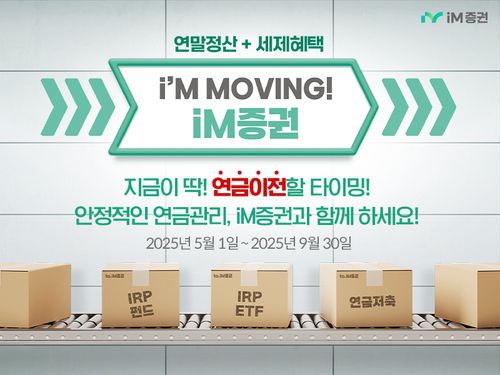 (서울=연합뉴스) 곽윤아 기자 = iM증권은 7일 IRP(개인형 퇴직연금)와 연금저축 등 연금 자산을 iM증권으로 이전하는 고객에 사은품을 지급하는 이벤트를 오는 9월 30일까지 진행한다고 밝혔다.