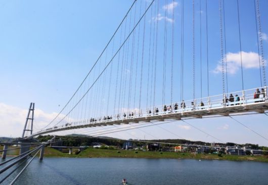 [헤럴드경제=함영훈 기자] 길이 515m나 되는 긴 출렁다리가 여주 남한강위에 오픈하면서, 때마침 열리는 여주도자기 축제의 흥행을 견인하고 있다.