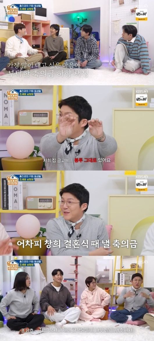 조세호는 "어차피 남창희 결혼식 때 그대로 내야 하는 금액이다. (남창희가) 축의금을 보관하라고 해서 보관 중이다"라고 웃었다.