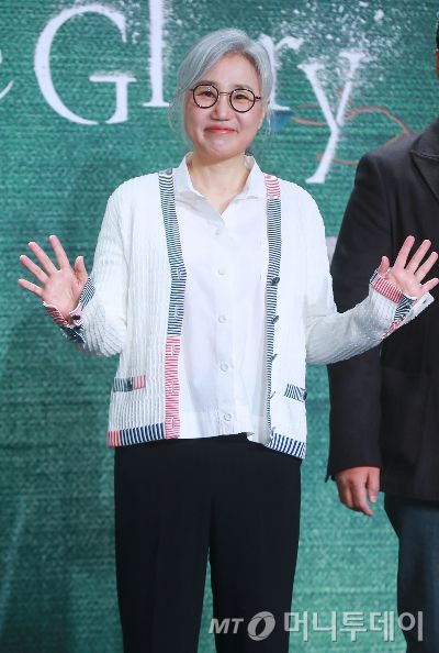 김은숙 작가가 20일 오전 서울 JW 메리어트 동대문 호텔에서 진행된 넷플릭스 오리지널 시리즈 '더 글로리' 제작발표회에 참석해 포즈를 취하고 있다. 유년 시절 폭력으로 영혼까지 부서진 한 여자가 온 생을 걸어 치밀하게 준비한 처절한 복수와 그 소용돌이에 빠져드는 이들의 이야기를 그린 '더 글로리'는 오는 30일 공개된다. /2022.12.20 |