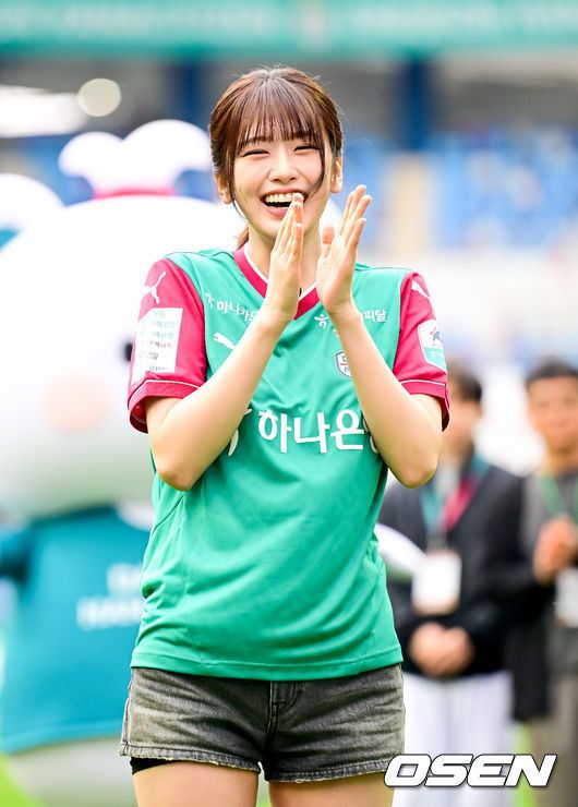 안유진은 지난 3일 대전월드컵경기장에서 열린 K리그1 대전하나시티즌과 FC안양의 경기에서 시축자로 등장했다.