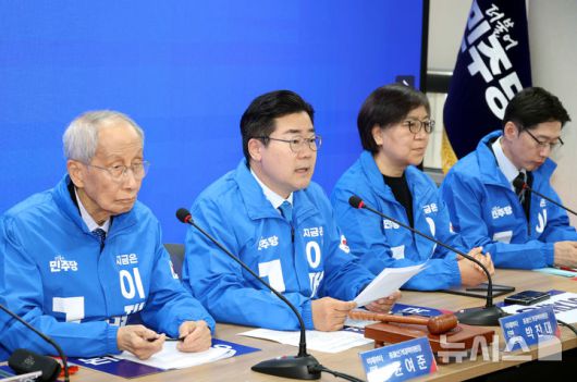 [서울=뉴시스]조재완 신재현 김경록 기자 = 박찬대 더불어민주당 상임총괄선거대책위원장은 7일 조희대 대법원장을 향해 "일체의 대선 개입 행위를 중단하고 대선 선거기간 중 잡혀있는 모든 후보들의 공판기일을 대선 이후로 연기하라"고 재차 압박했다.
