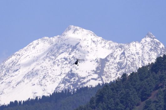 카슈미르 계곡 위를 비행 중인 헬기/AP 연합뉴스 |