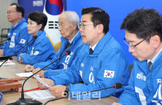 [이데일리 노진환 기자] 박찬대 더불어민주당 상임총괄선대위원장이 7일 서울 여의도 당사에서 열린 중앙선거대책위원회의에서 발언하고 있다.