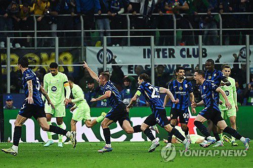 시모네 인자기 감독이 이끄는 인터 밀란은 7일(한국시간) 이탈리아 밀라노에 있는 산시로에서 열린 바르셀로나(스페인)와의 2024-2025시즌 유럽축구연맹(UEFA) 챔피언스리그 4강 2차전에서 연장 접전 끝에 다비데 프라테시의 결승 골로 4-3으로 승리했다.