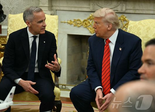 도널드 트럼프 미국 대통령이 6일(현지시간) 워싱턴 백악관에서 마크 카니 캐나다 총리와 회담을 하고 있다. 2025.05.07 ⓒ AFP=뉴스1 ⓒ News1 우동명 기자