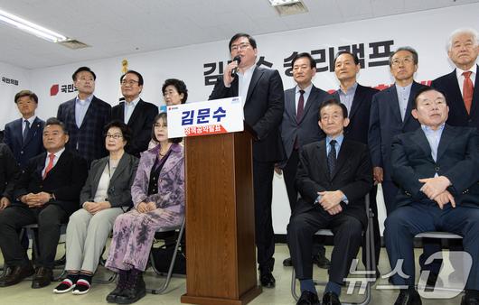 (서울=뉴스1) 이재명 기자 = 유동규 전 성남도시개발공사 기획본부장이 7일 오전 서울 여의도 김문수 국민의힘 대통령 후보 선거 캠프 사무실에서 열린 김 후보 지지 성명서 발표 기자회견에 참석해 발언을 하고 있다. 2025.5.7/뉴스1