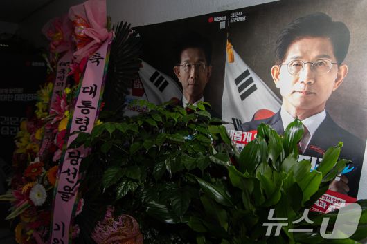 (서울=뉴스1) 이재명 기자 = 단일화를 둘러싼 국민의힘 지도부와 김문수 대통령 선거 후보간 갈등이 최고조로 치닫고 있다. 당원 여론조사 추진 등 전방위 단일화 수용 압박에 김 후보는 공식일정 보이콧으로 응수했다. 한편 김 후보는 한덕수 무소속 대통령 후보와 이날 오후 단일화 협상을 위해 만나겠다고 공지했다. 사진은 이날 서울 여의도 김문수 후보 선거 캠프 사무실의 모습. 2025.5.7/뉴스1