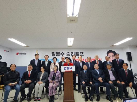 전직 국회의원 209인이 7일 오전 서울 여의도 대하빌딩에 위치한 김문수 후보 캠프에서 김 후보를 지지하는 내용의 성명을 발표하고 있다. [사진=김문수 캠프 제공] |