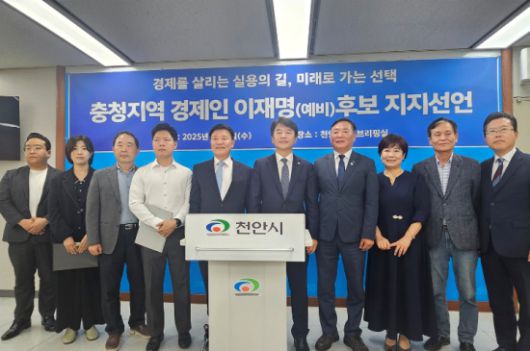 지지 선언에는 충청지역 경제인 등을 비롯해 민주당 문진석 국회의원(천안갑), 김학민 이로운경제연구소장 등이 함께했다.