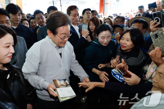 (임실=뉴스1) 안은나 기자 = 이재명 더불어민주당 대통령 후보가 2차 골목골목 경청투어 마지막 날인 7일 오전 전북 임실군 임실시장을 찾아 인사하고 있다. 2025.5.7/뉴스1coinlocker@news1.krCopyright ⓒ 뉴스1. All rights reserved. 무단 전재 및 재배포, AI학습 이용 금지.