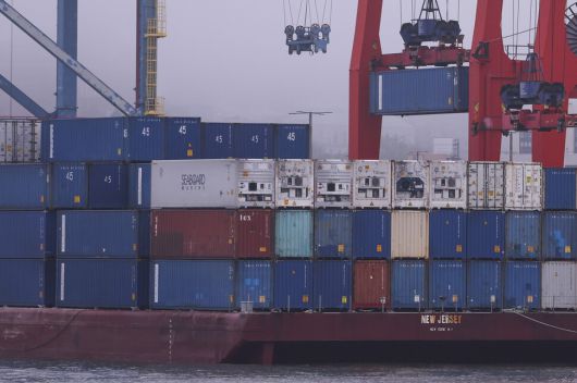 6일 미국 뉴욕 브루클린에 있는 레드훅 해상터미널에서 중국발 화물을 실은 화물선의 컨테이너가 하역되고 있다. 뉴욕/EPA 연합뉴스 |