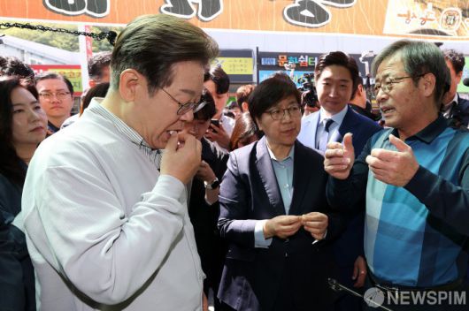 수삼 시식하는 이재명 대선 후보