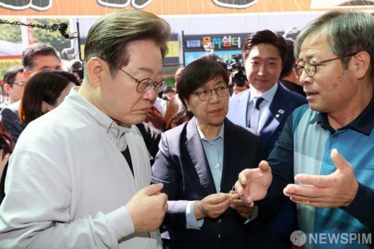 [진안=뉴스핌] 정일구 기자 = 골목골목 경청투어에 나선 이재명 더불어민주당 대선 후보가 7일 오전 전북 진안군 새참거리 인근 인삼 가게에서 수삼을 시식하고 있다. 2025.05.07 mironj19@newspim.com |