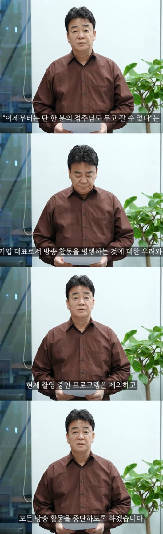 (엑스포츠뉴스 이예진 기자) "이제 방송인이 아닌 기업인 백종원으로 돌아가겠습니다."