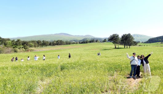 4일 오후 넷플릭스 인기 시리즈 '폭싹 속았수다' 촬영지인 제주시 오라2동 청보리밭에서 상춘객들이 봄 기운을 만끽하고 있다. 2025.5.4/뉴스1 ⓒ News1 오미란 기자 |