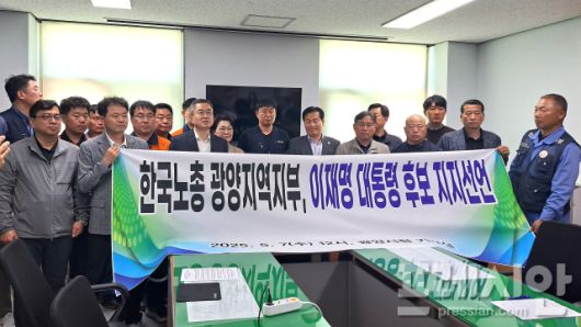 한국노동조합총연맹 광양지역지부(의장 신용수)가 7일 제21대 대통령 선거를 앞두고 더불어민주당 이재명 후보에 대한 공식 지지를 선언했다.