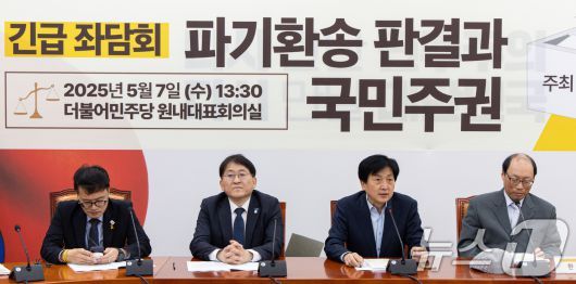 (서울=뉴스1) 이재명 기자 = 오기형 더불어민주당 의원이 7일 오후 서울 여의도 국회에서 열린 파기환송 판결과 국민주권 긴급 좌담회에서 발언을 하고 있다. 2025.5.7/뉴스12expulsion@news1.krCopyright ⓒ 뉴스1. All rights reserved. 무단 전재 및 재배포, AI학습 이용 금지.
