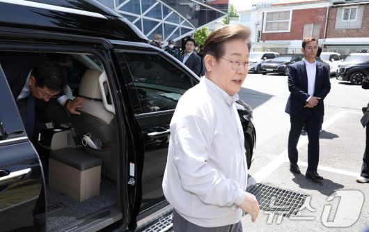 (전주=뉴스1) 안은나 기자 = 이재명 더불어민주당 대통령 후보가 2차 골목골목 경청투어 마지막 날인 7일 오후 전북 전주시의 카페에서 '영화와 드라마, 정치가 그리는 미래의 스크린' K-콘텐츠 산업 진흥 간담회에 참석하고 있다. (공동취재) 2025.5.7/뉴스1