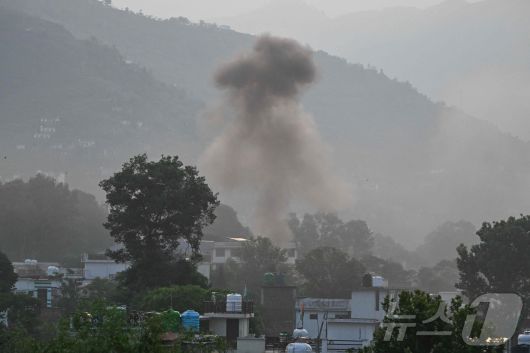 7일(현지시간) 인도의 푼치에서 파키스탄을 겨냥한 미사일 공격으로 검은 연기가 솟아 오르고 있다. 2025.05.07 ⓒ AFP=뉴스1 ⓒ News1 우동명 기자 |
