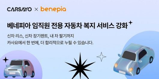 AI 모빌리티 플랫폼 카사요㈜가 선택적 복지 플랫폼 베네피아와의 제휴를 통해 임직원 전용 자동차 혜택을 제공한다고 밝혔다. 베네피아 회원이라면 신차 구매 리스, 신차구매 장기렌트, 내 차 팔기까지 원스톱으로 이용할 수 있는 카사요의 프리미엄 서비스를 누릴 수 있다.