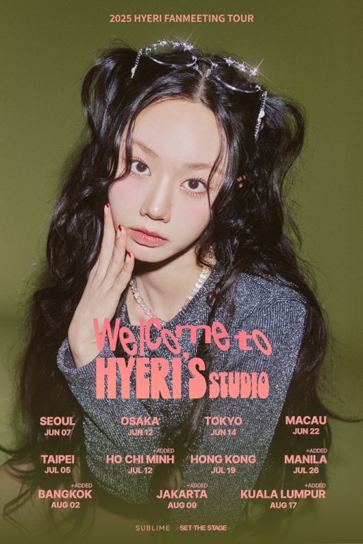 혜리의 팬미팅 투어 ‘2025 HYERI FANMEETING TOUR ‘Welcome to HYERI’s STUDIO’’ 해외 공연의 상세 내용은 추후 순차적으로 공개된다.