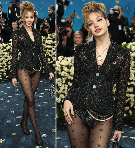 그룹 블랙핑크 리사가 '2025 멧 갈라'에서 파격적인 란제리 패션을 선보인 가운데, 의상에 놓인 자수로 논란의 중심에 섰다.