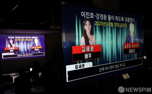 [서울=뉴스핌] 이호형 기자 = 배우 고(故) 김새론 유족 측이 7일 오후 서울 삼성동 스페이스쉐어 삼성역센터에서 배우 김수현과 관련한 두 번째 기자회견을 연 가운데, 김세의 유튜브 가로세로연구소(가세연) 대표가 제보자가 제보한 녹취 영상을 제시하고 있다. 2025.05.07 leemario@newspim.com |