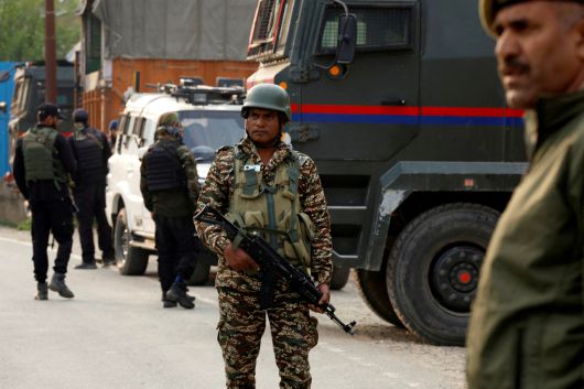 인도 군인들이 7일 인도령 카슈미르 지역에서 경계 근무를 서고 있다. [로이터] |