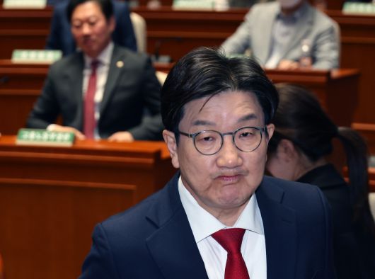 권성동 국민의힘 원내대표가 지난 5일 국회에서 열린 의원총회에 참석해 발언하기 위해 단상으로 향하고 있다. [연합] |