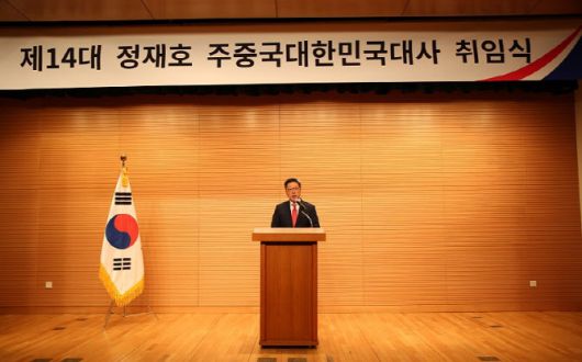 지난 2022년 8월 1일 당시 정재호 주중 한국대사가 취임식에서 발언하고 있다. (사진=주중 한국대사관) |