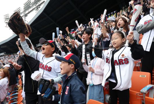 어린이날인 지난 5일 서울 송파구 잠실야구장에서 열린 2025 프로야구 LG 트윈스 vs 두산 베어스의 경기, 어린이 야구팬이 열띤 응원을 펼치고 있다. 뉴시스 |